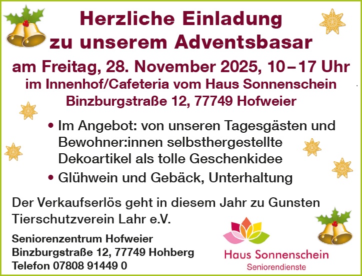 zu Gunsten des Tierschutzvereins Lahr e. V. kommen Sie vorbei wir freuen uns auf Sie!